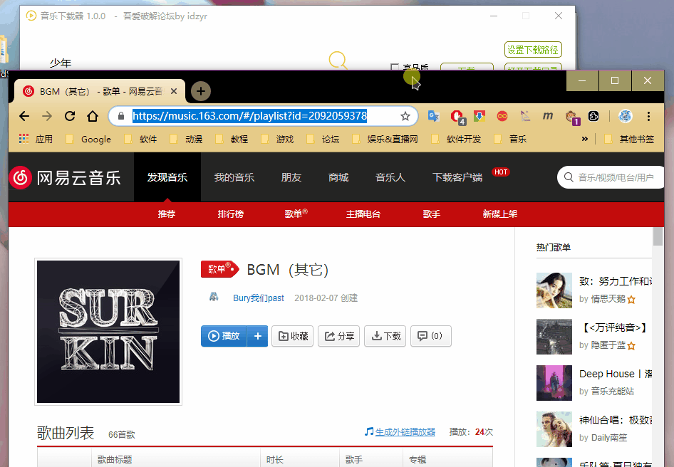歌单下载;将歌单url粘贴到搜索框中点击放大镜图标软件会自动加载该歌单下的歌曲,(歌单url可以是网易云Web端地址或者PC端/App歌单分享地址)如果要下载整个歌单请使用快捷键全选之后点击下载按钮开始下载(CTRL+A)。