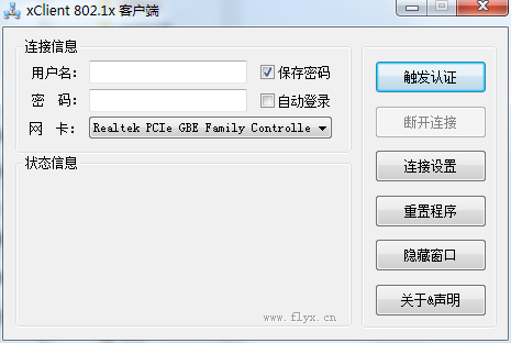 2、安装完后打开xclient,填上用户名密码,选好网卡(要选有线网卡哦)